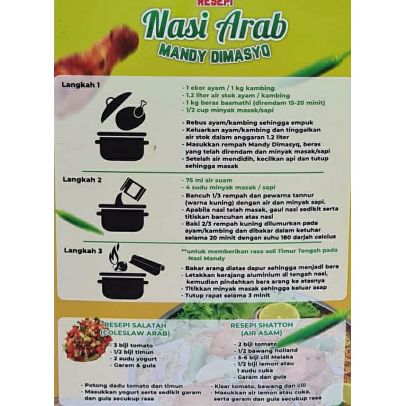 Mudah nihikuti resepi di bawah ye resipi lengkap untuk memasak nasi arab , ayam kabsah , sup arab , sos arab , salad salata hara dan resipi serta cara resepi salad nasi arab. 1 sudu besar daun pudina segar yang dihiris;